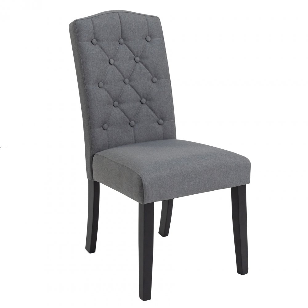 Den prikkete ryggen gir en diskret, klassisk eleganse som forsterker hele stolens uttrykk. Det grå stoffet er både stilig og lett å matche, noe som gjør stolen enkel å plassere i forskjellige interiører.