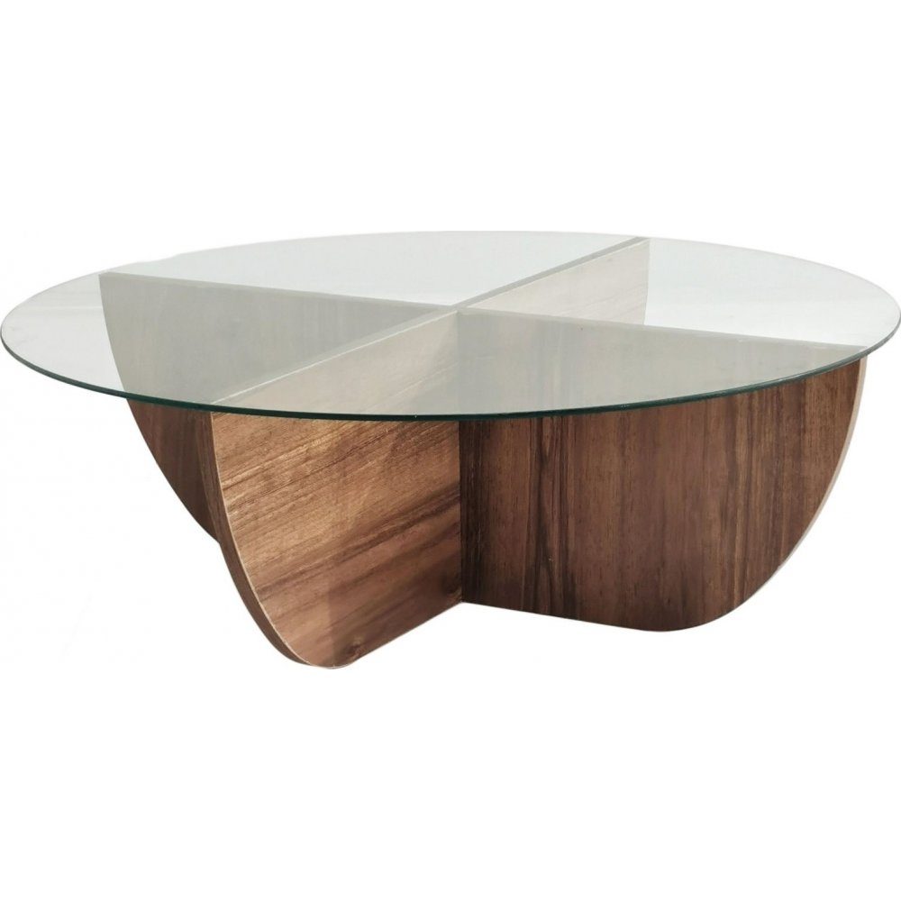 Salongbord laget av tre. Bordplate laget av temperert glass.
