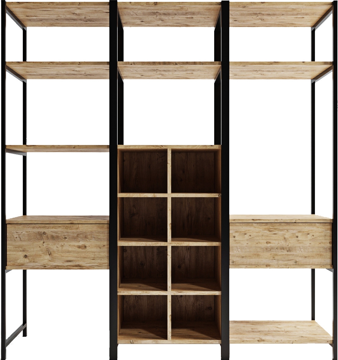 Gangmøbler laget av melaminbelagt sponplate. Metallben.