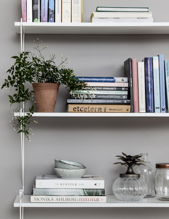 Trendy designet vegghylle med praktiske justerbare hylleplan i hvitlakkert mdf. Tilvirket i hvitlakkert metall og lett å montere på plass. Perfekt for oppbevaring av de diverse saker, for eksempel pyntesaker, bøker m.m.