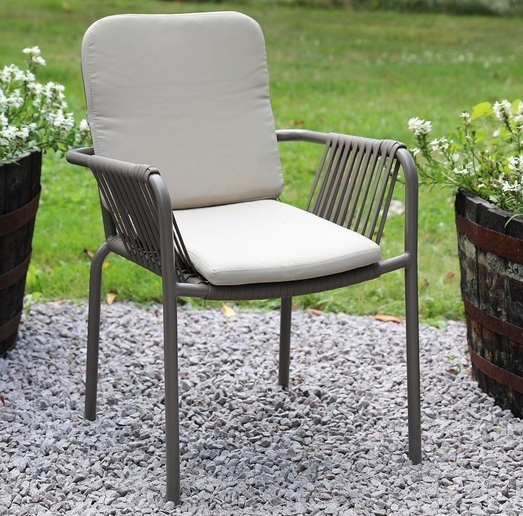 Stol i slitesterk og værbestandig aluminium, grå ramme med repsits.