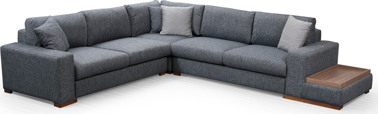 Sofa laget av bøketre med ben av valnøtt og møbeltrekk av polyester. Sofaen har løse sete- og ryggputer og møbeltrekk som kan renses. Sofaen kan også kjøpes med et innebygd sidebord på en av endene.