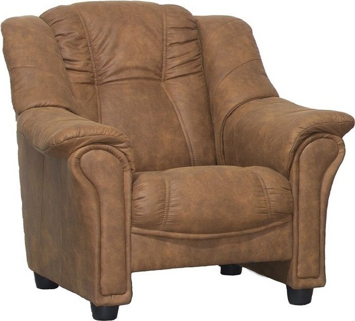Rom lenestol i brunt mykt mikrofiberstoff med sorte ben.