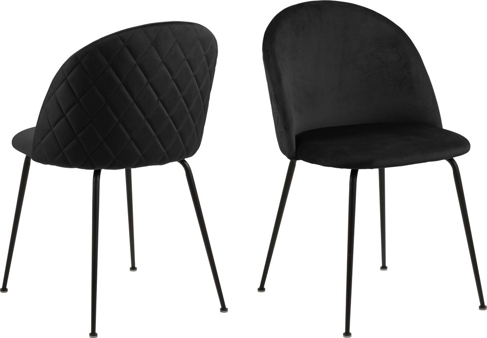 Spisestol kledd med et behagelig svart stoff for maksimal komfort. Rammen er laget av svart pulverlakkert metall.