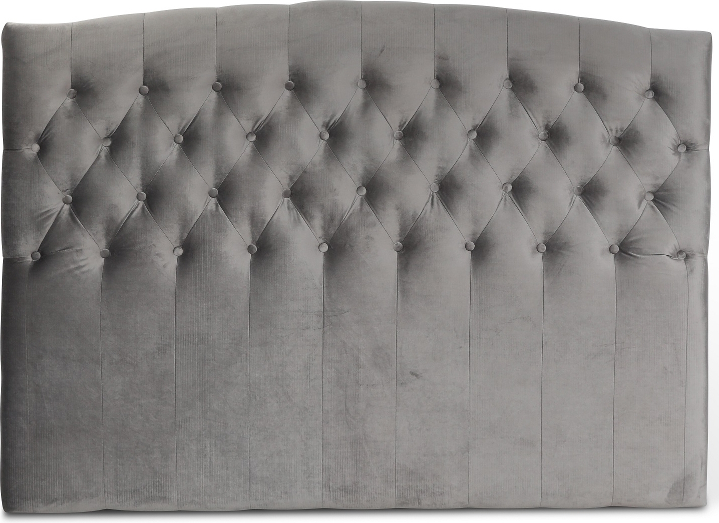 Senggavle Love i et grått fløyelstoff med en myk følelse. Pen design med dypheftede knapper for å gi et luksuriøst uttrykk på soverommet.