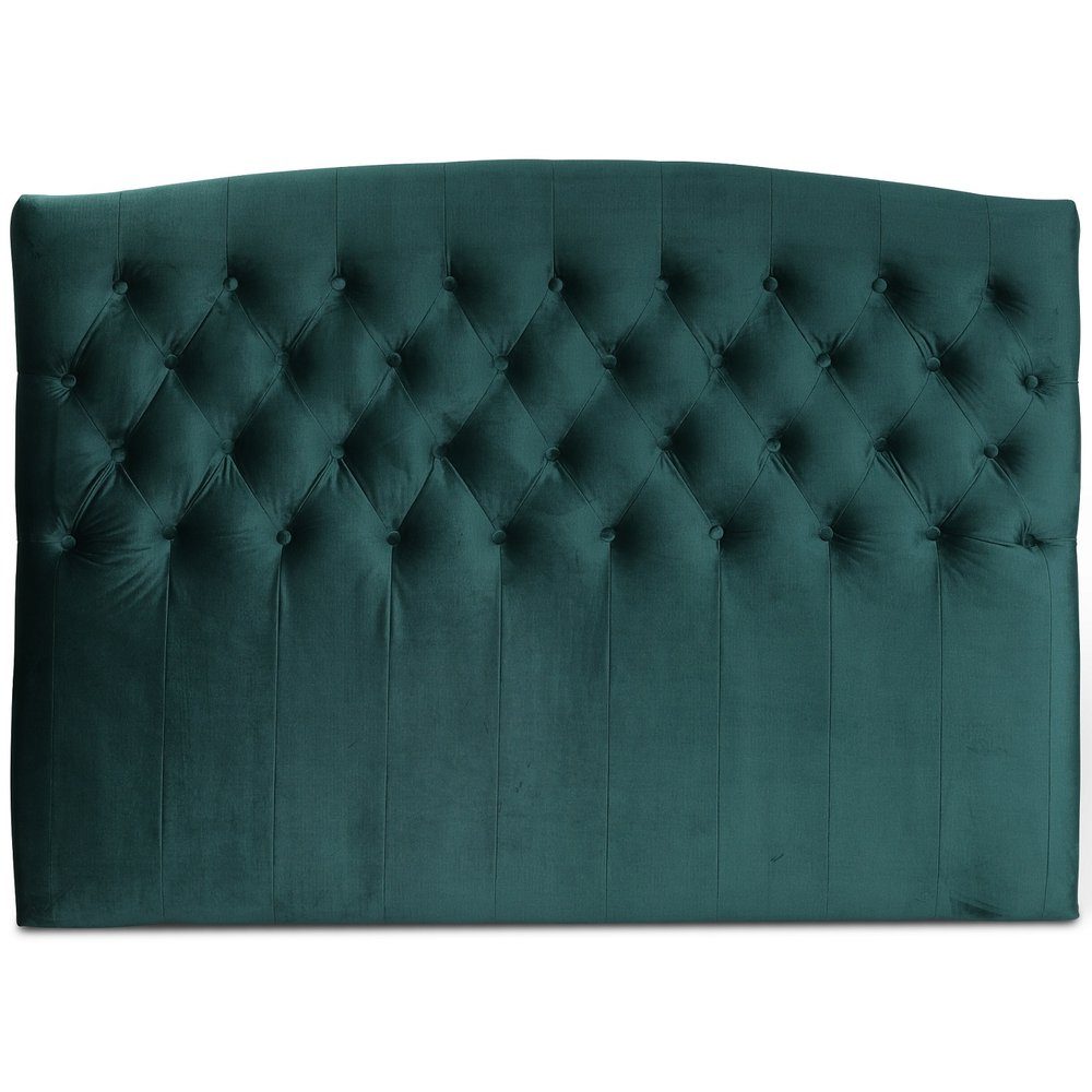 Senggavle Love i et grønt fløyelstoff med en myk følelse. Pen design med dypheftede knapper for å gi et luksuriøst uttrykk på soverommet.