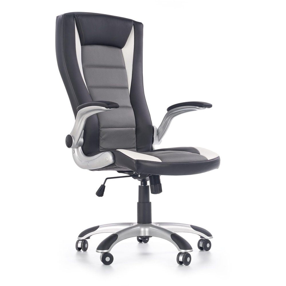 En fin kontorstol med et moderne design. Kontorsstolen er kledd med et svært behagelig kunstskinn for maksimal komfort. Stolens høyde er justerbar ved hjelp av spaken under setet og stolen er også lett å flytte takket være hjulene på stjernefoten.