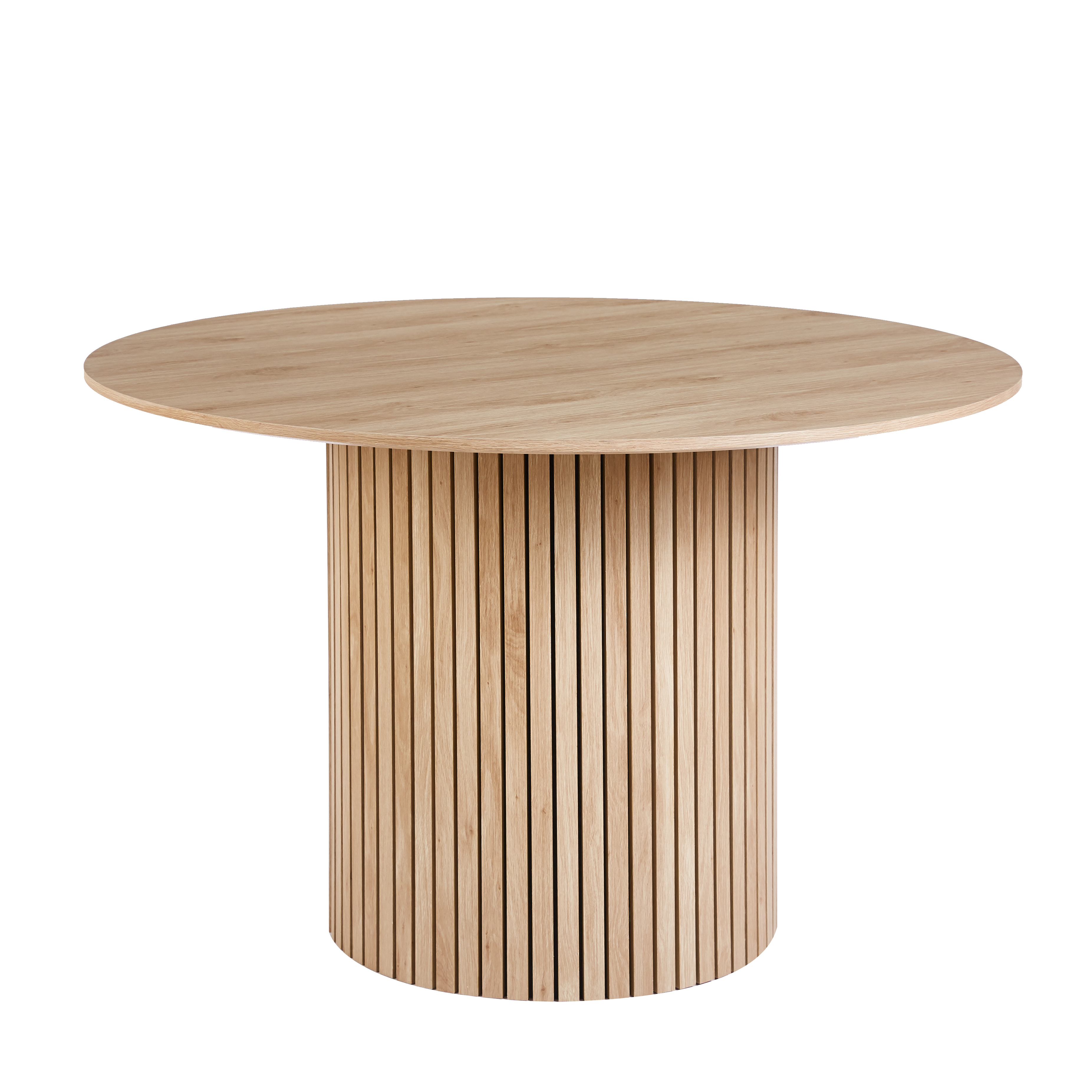 Spisegruppen Ludvig & Brandon kombinerer nordisk eleganse med naturlige materialer og tidløs design. Det runde Ludvig spisebordet har en slank form med en bordplate i MDF med eikefiner og en matchende trebase, noe som gir et harmonisk og moderne uttrykk. Den sjenerøse diameteren på 120 cm gjør bordet ideelt for 4-5 personer og skaper et innbydende sted for måltider og sosialt samvær.