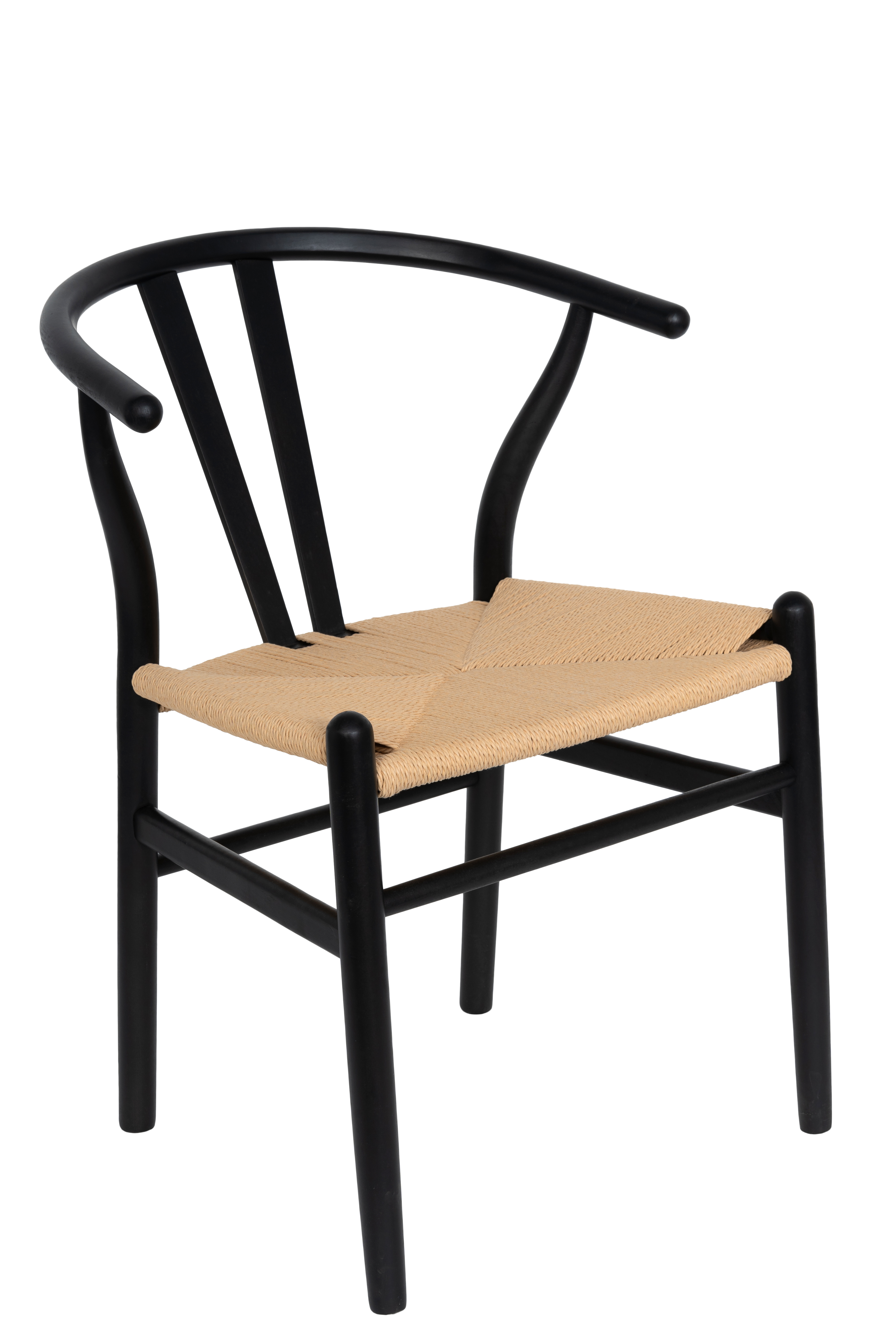 De fire Brandon-lenestolene er laget av FSC-sertifisert, sortmalt bøk med et vakkert vevd sete av slitesterk papirsnor. Kombinasjonen av solid treverk, naturlig sete og stilige linjer gjør at stolene føles både solide og komfortable. Den svarte overflaten står i fin kontrast til bordets varme eiketone og skaper en elegant helhet.