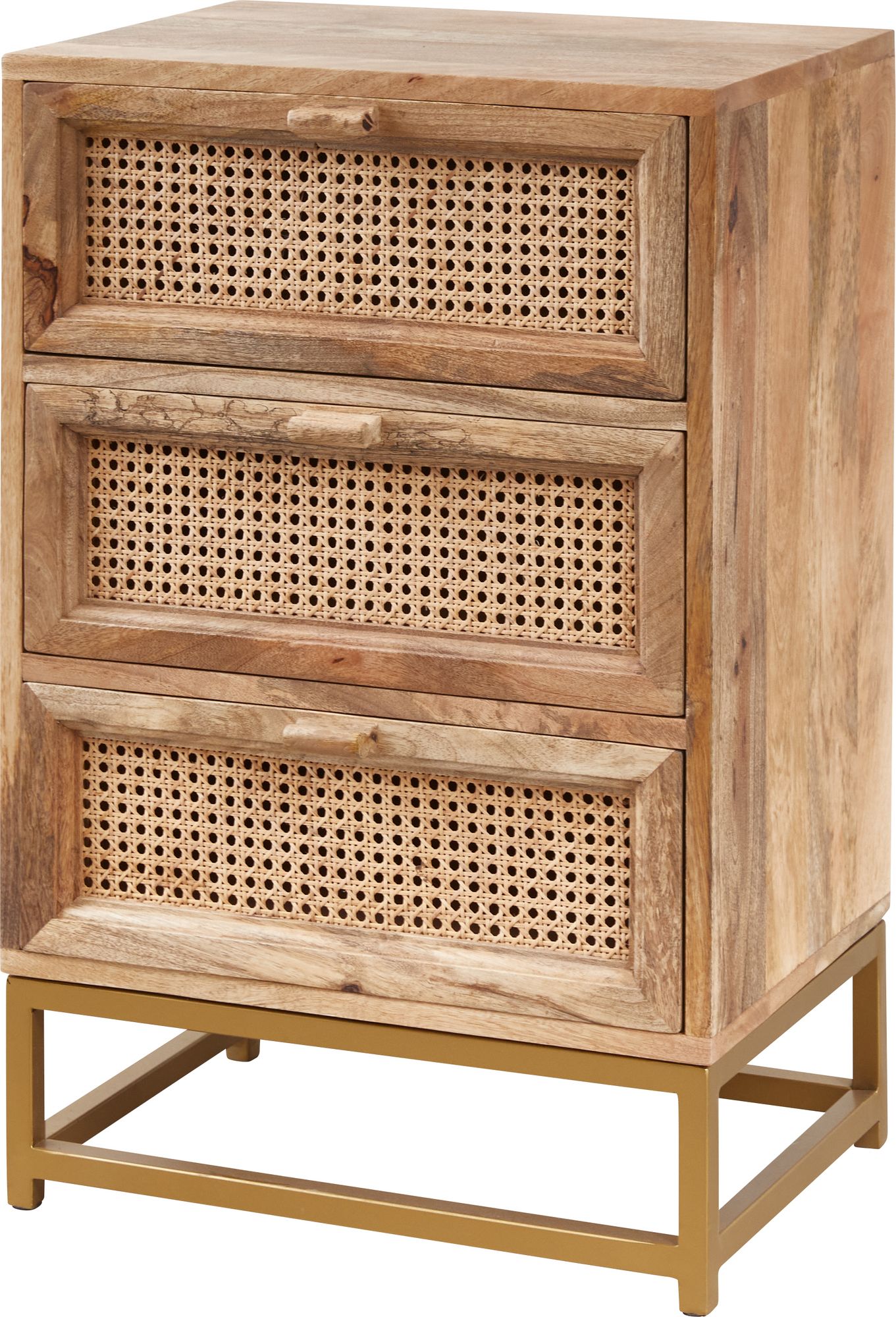 Luna skjenk med 3 oppbevaringsskuffer. Laget i mangotre med naturlig trefinish. Fronten på skuffene er laget av rotting.