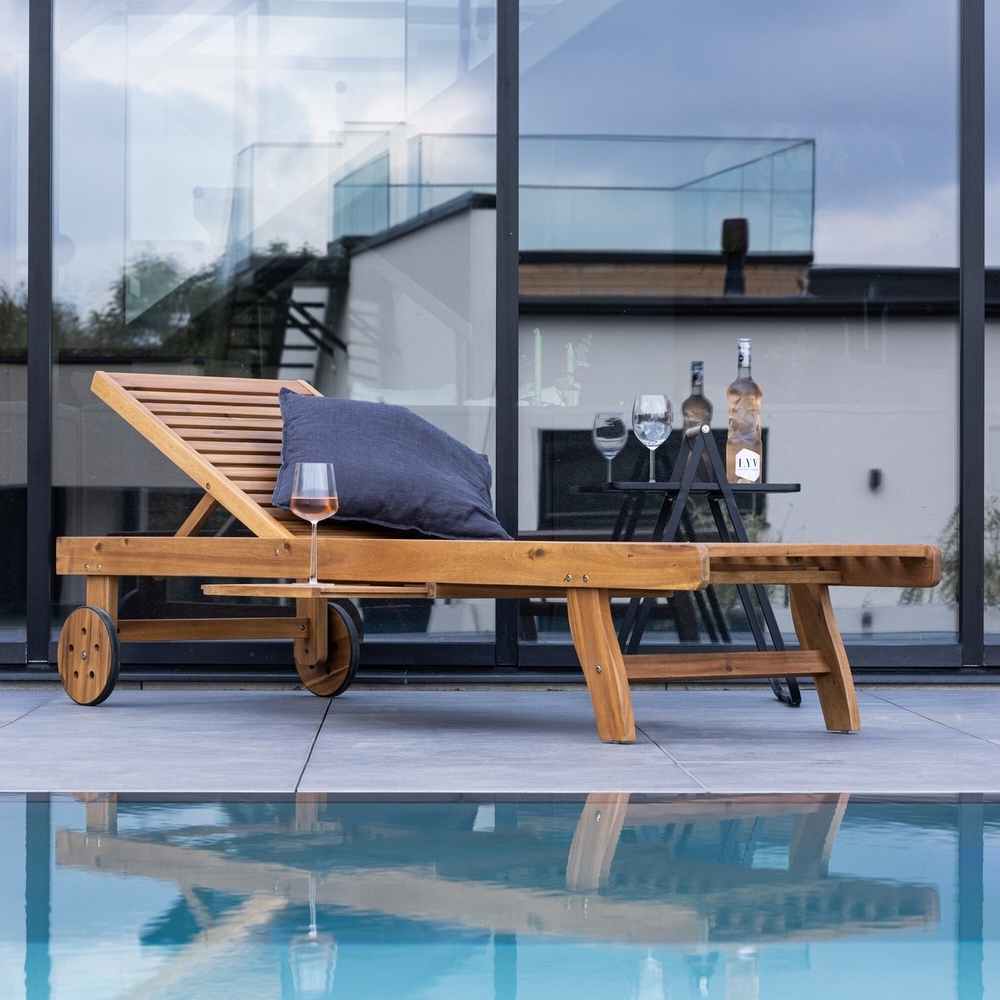 Luzon solseng er den perfekte følgesvennen for dine avslappende dager utendørs. Laget av slitesterk akasie med teak-utseende, og tilbyr enkelhet og eleganse i én pakke. Med sitt rene design skiller imidlertid en unik detalj seg ut - et praktisk brett på siden, perfekt for å holde boken, drinken eller solkremen innen rekkevidde mens du nyter solen. Luzon solsengen har også hjul, noe som gjør den enkel å flytte slik at du alltid kan finne det beste solfylte hjørnet i hagen eller på terrassen. Den er også justerbar, slik at du kan finne den mest komfortable liggestillingen mens du slapper av i solskinnet. Med Luzon solseng kan du nyte luksusen av utendørs avslapning med stil og komfort. Lag din egen personlige oase og la Luzon bli ditt favorittsted for solfylte dager og late stunder utendørs