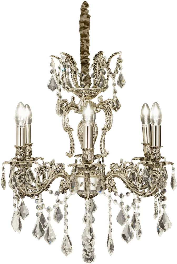 Lysekrone i metall i antikk sølvutførelse. Henges enkelt opp i taket.