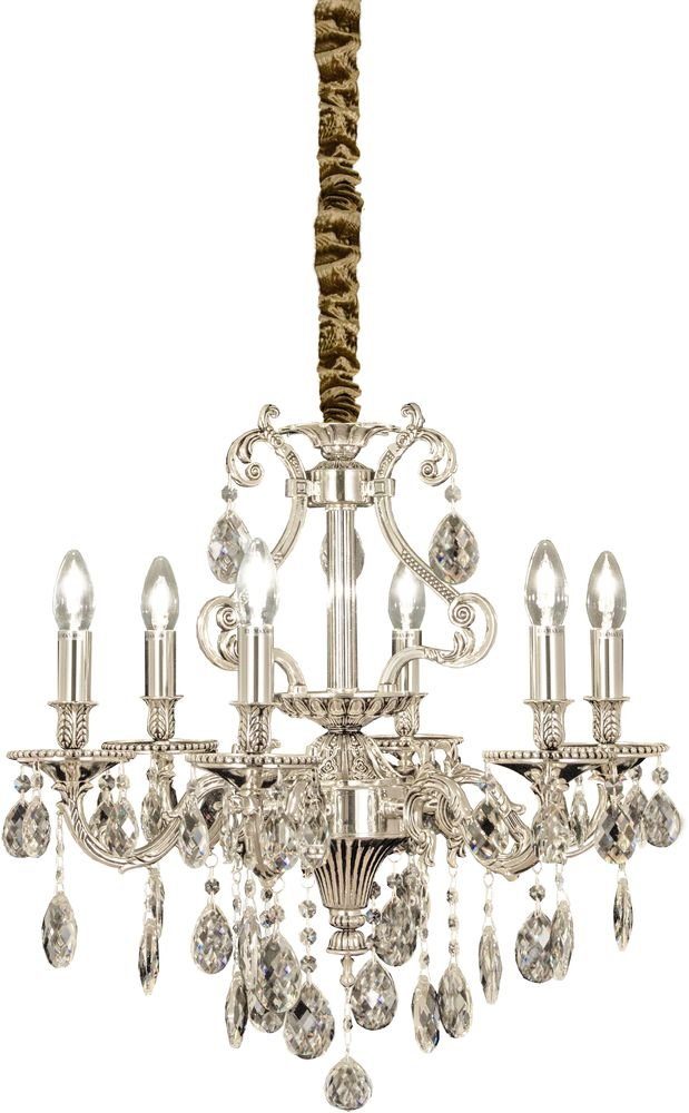 Lysekrone i metall i antikk sølvutførelse. Enkel å henge på plass i taket.