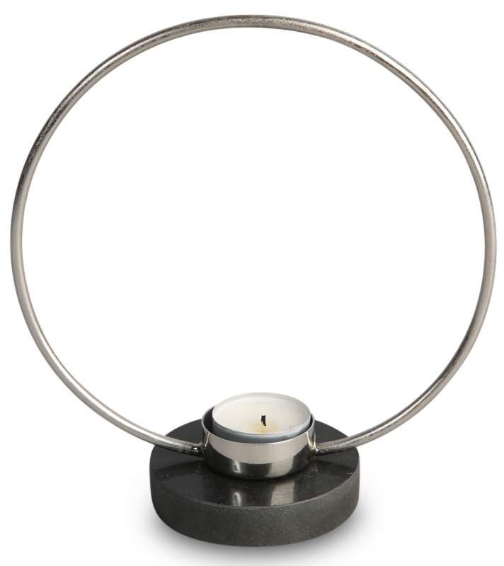 Song lysestake med 1 stk. holder for varmelys. Forkrommet ring med fot i grå granittstein