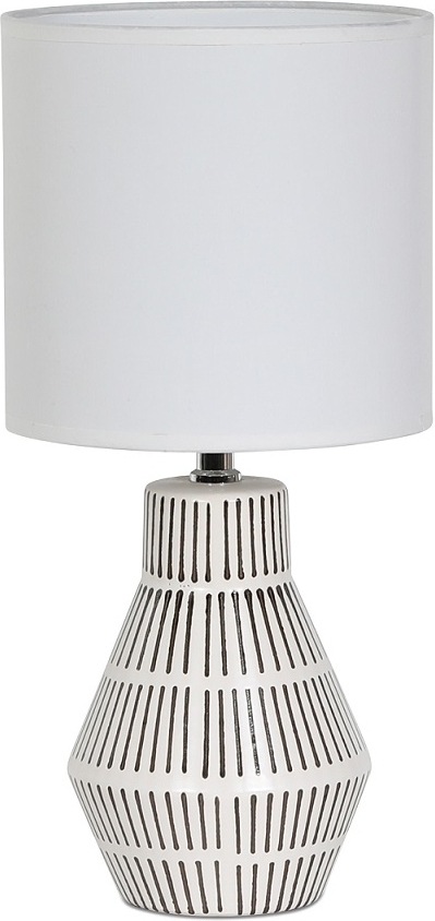 Märtha Bordlampen komplett med en hvit lampeskjerm. Lampefot i hvit/grå keramikk.