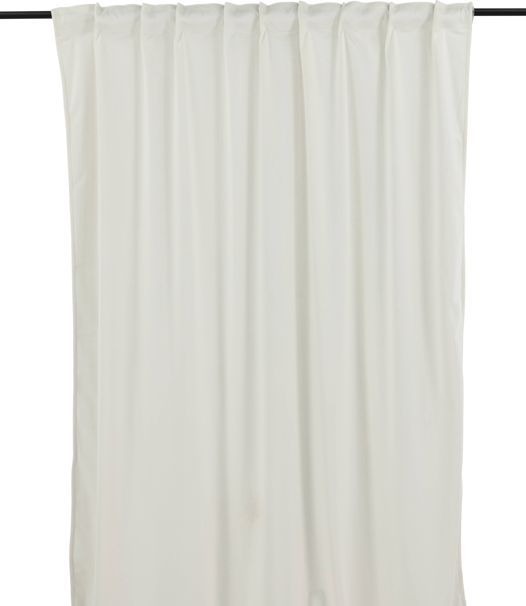 Gardinlengde i polyesterfløyel med en blank overflate som skinner fint i lyset. Gardinlengdene har påsydde multifunksjonsbånd som gjør at de kan henges opp på forskjellige måter, enten med fingerkroker, skjult oppheng eller i gardinkanalen.