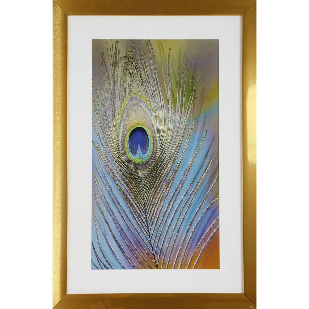 Maleri med vakkert dyremotiv, påfugl. Søt ramme inngår.