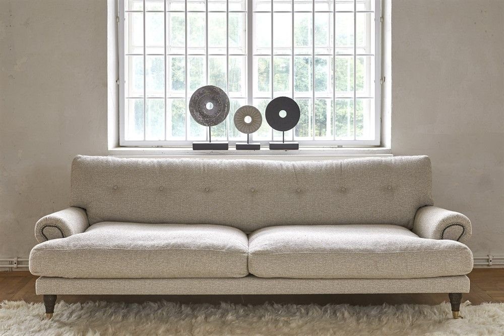 Howard sofa med en vri. Malibu er basert på den tradisjonelle Howard-sofaen, men med beige bouclé-stoffet og den hele puten på ryggen skiller den seg ut i mengden. Takket være den klassiske og så kjente formen fungerer den praktisk talt i alle rom, og det dunstoppede setet gjør det ekstremt behagelig å sitte i. En original med et snev av ekstra stil.