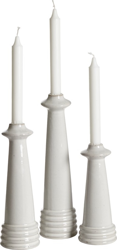Stilig lysestake i glasert keramikk. Passer like godt alene som i en gruppe.