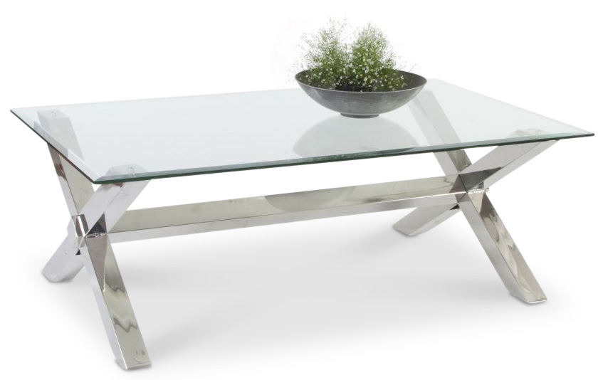 Sofabord fra Skånska Möbelhuset med glasskive og ben i forkrommet metall.