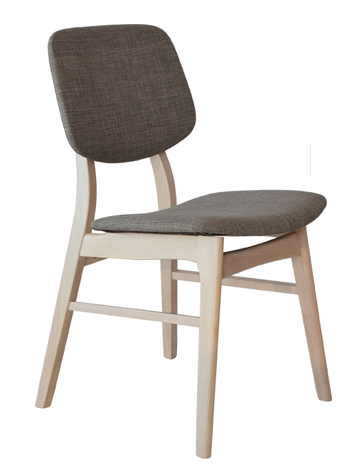 Malte er en serie i stilren skandinavisk design! Massivt tre i utførelse whitewash med kledd sete i gråbeige stoff!