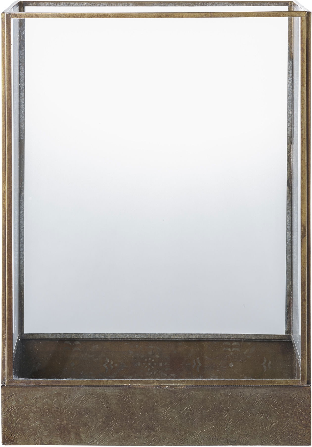 Kube i glass og metall hvor du kan lage dine egne kreasjoner med lys og dekorasjoner. Leveres montert.