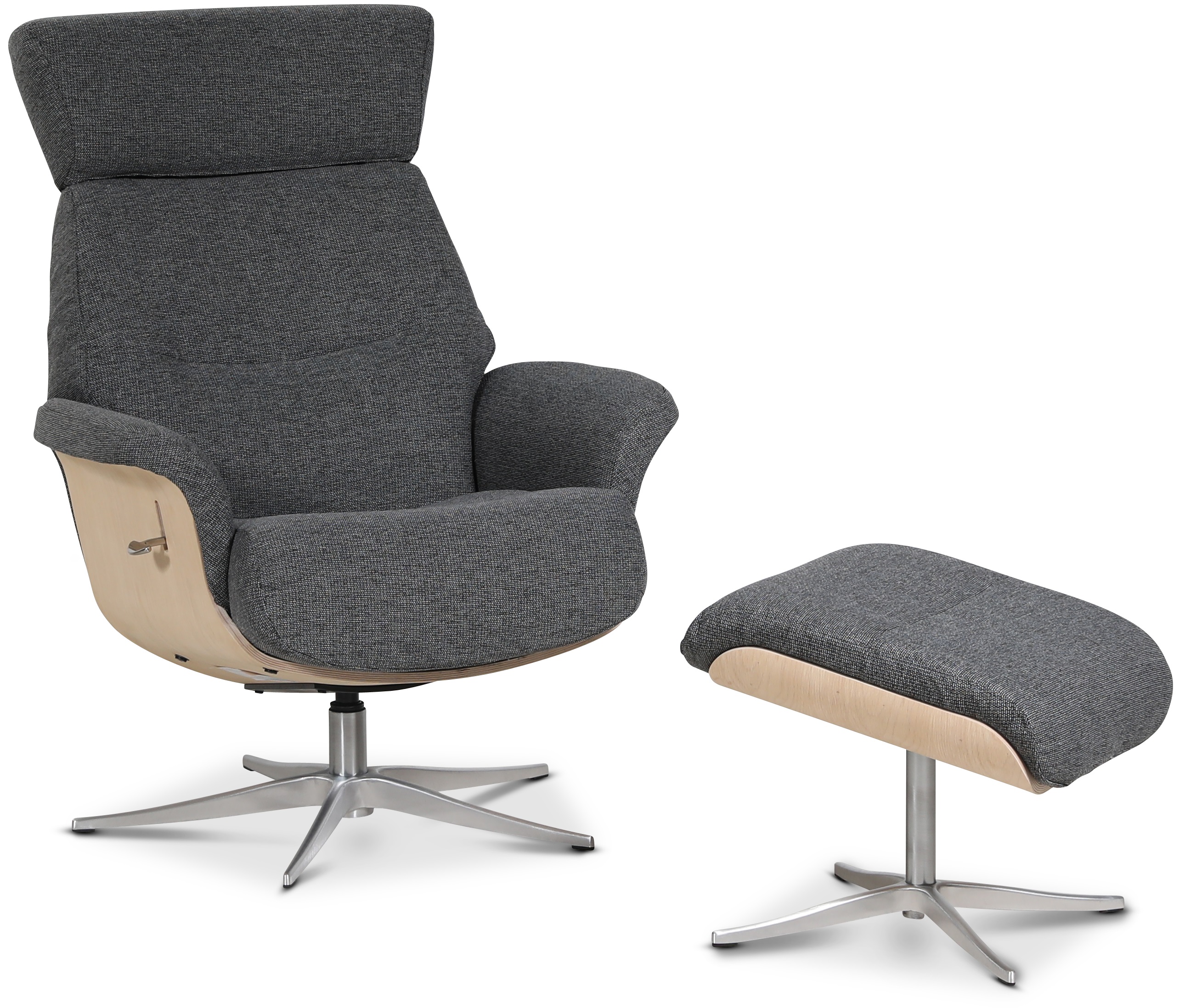 Marbäck recliner- lenestol med fotskammel - Grått tøystoff / Tre