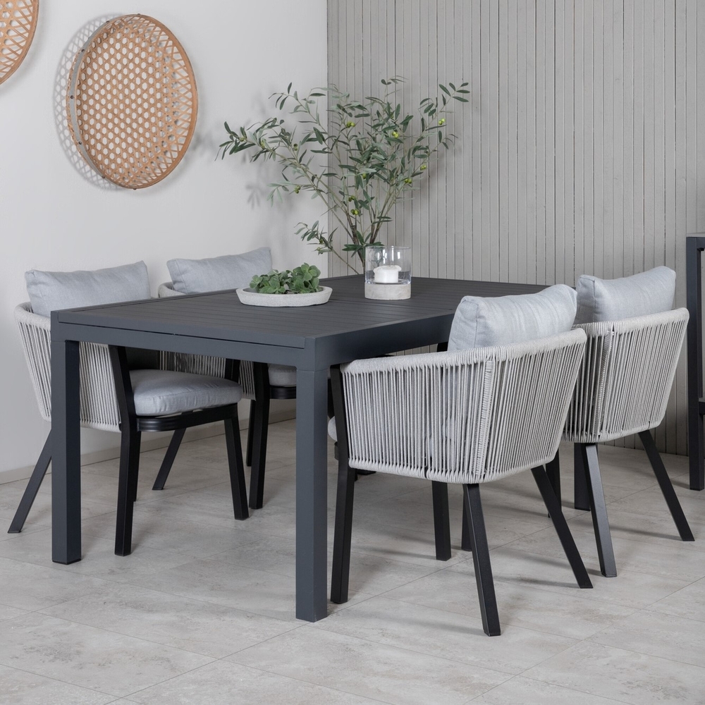 Marbella uteservering sett med 4 Virya stoler - Svart/Grå