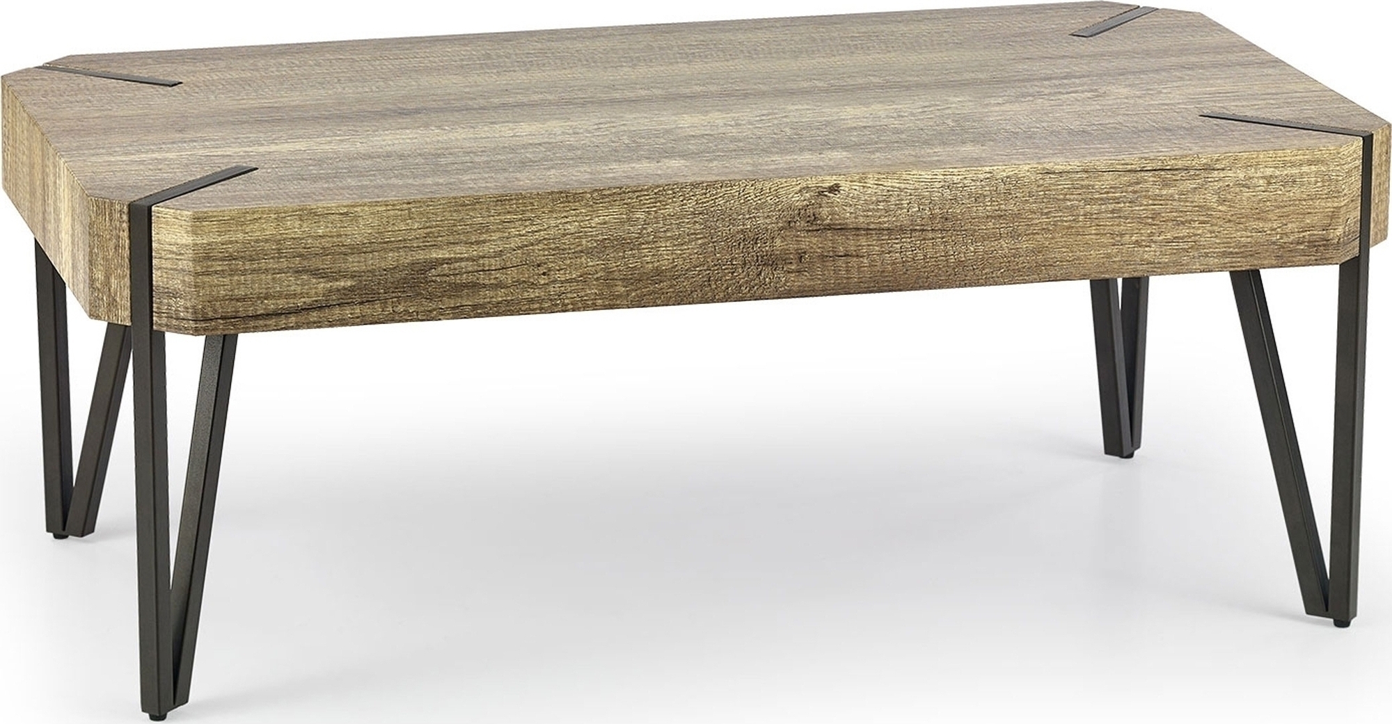 Et stilig sofabord i et tidløst design. Benene er produsert i svart metall og bordplaten i MFP (premium treplate) med et fint eikelaminat.