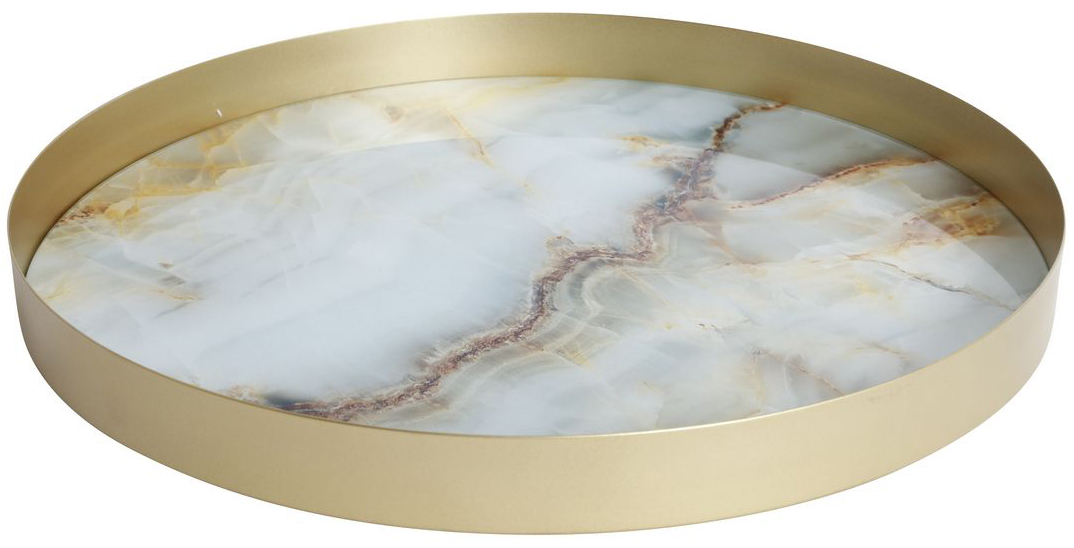 Dekorativt rundt brett i vår serie "Marmor" med et lys steinmønster.
