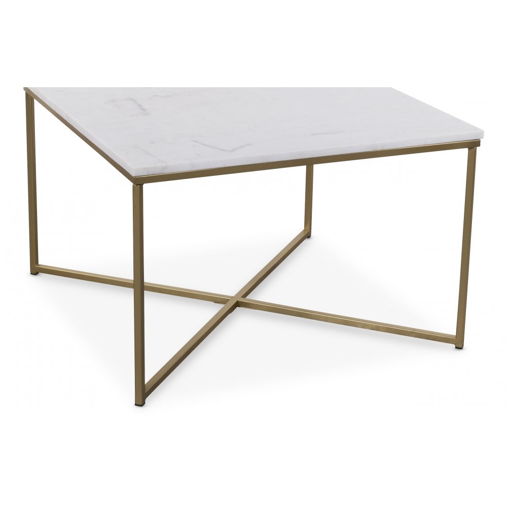 Maryland sofabord 75x75 cm - Hvit ekte marmor / Matt messing