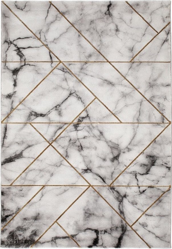 Teppets mønster får deg til å tenke på marmor da den skifter i ulike grå toner, samt at den har mørkere partier som gir teppet dybde.