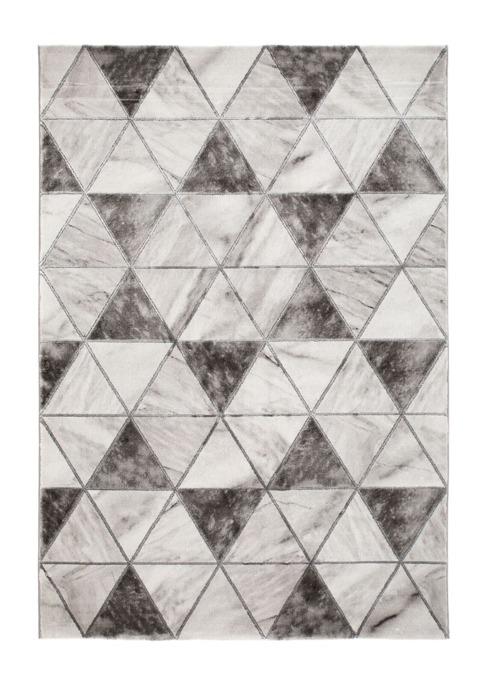 Craft Trendy har en grå bunnfarge i marmor utseende, med lysegrå langettering som løper langs langsidene. Teppet har et rutemønster i mørkegrå og sølvaktige toner som er gjort i carving teknikk, som innebærer at den har utskjæringer for å gjøre detaljer mer fremtredende.
