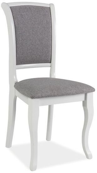 En fin matstol med klassisk design. Understellett er produsert av hvitlakkert tre og sete, samt ryggstøtten er kledd med et behagelig stoff for maksimal komfort.