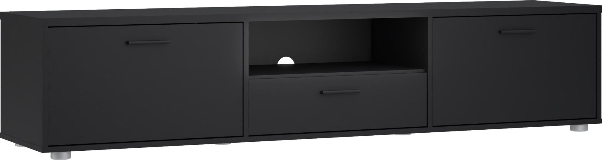 Mediebenk i tre med ABS-plastkant. Aluminiumshåndtak og plastben.