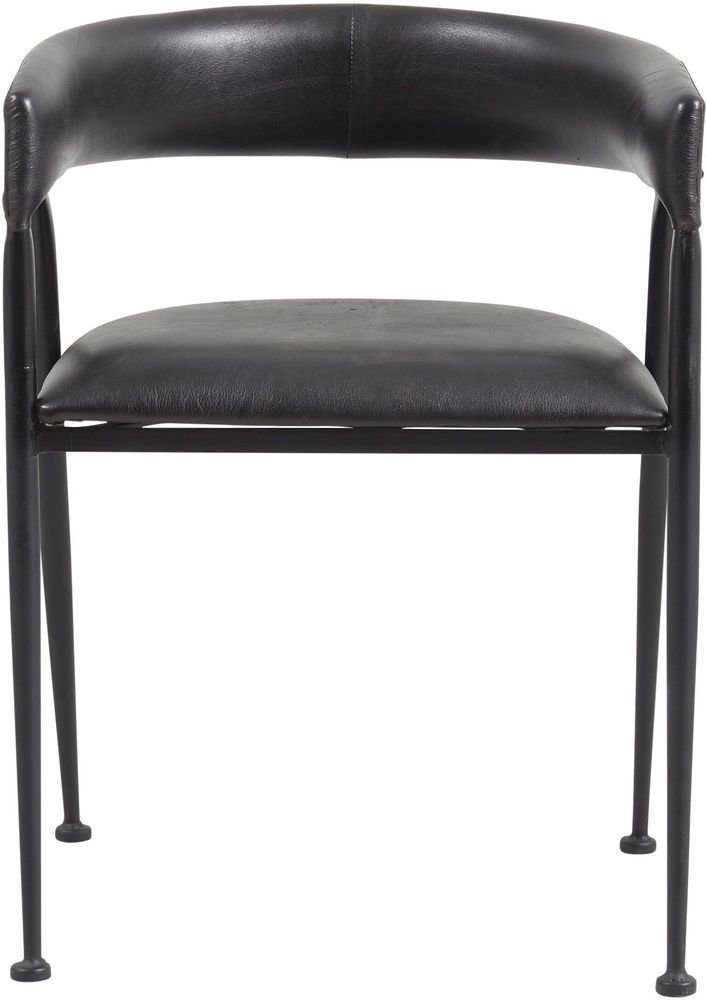 Karmstol med svart ramme av metall, sete og rygg i svart lær. Finnes også med mokkafarget trekk.