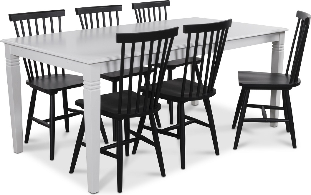 Mellby spisegruppe 180 cm bord med 6 stk sorte Karl Pinnstolar