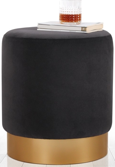 Puff laget av tre. Dekket med fløyel. Stoppe skum. Maks vekt: 160 kg.