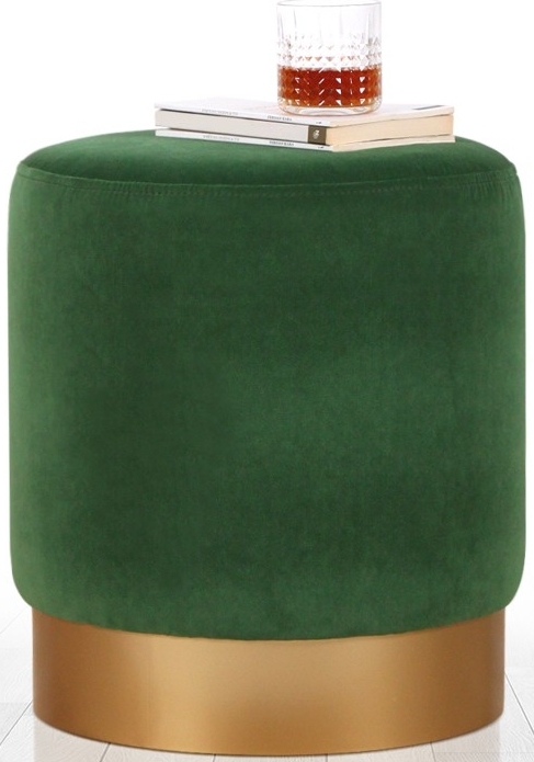 Puff laget av tre. Dekket med fløyel. Stoppe skum. Maks vekt: 160 kg.