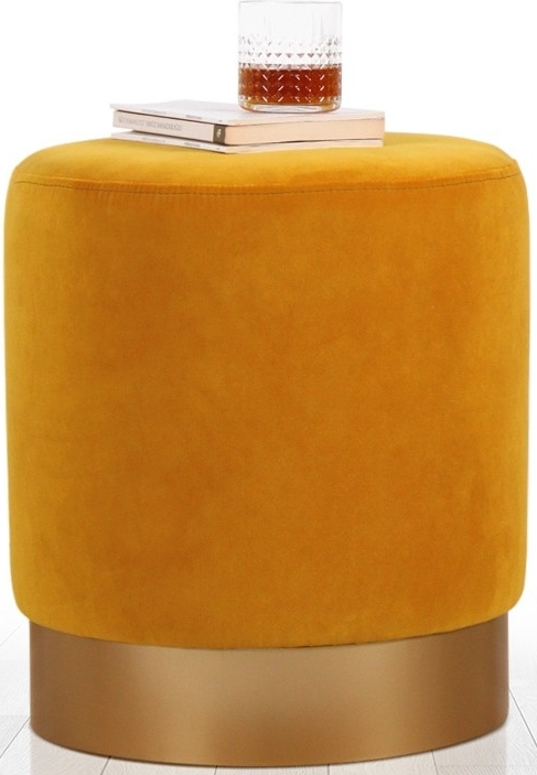 Puff laget av tre. Dekket med fløyel. Stoppe skum. Maks vekt: 160 kg.