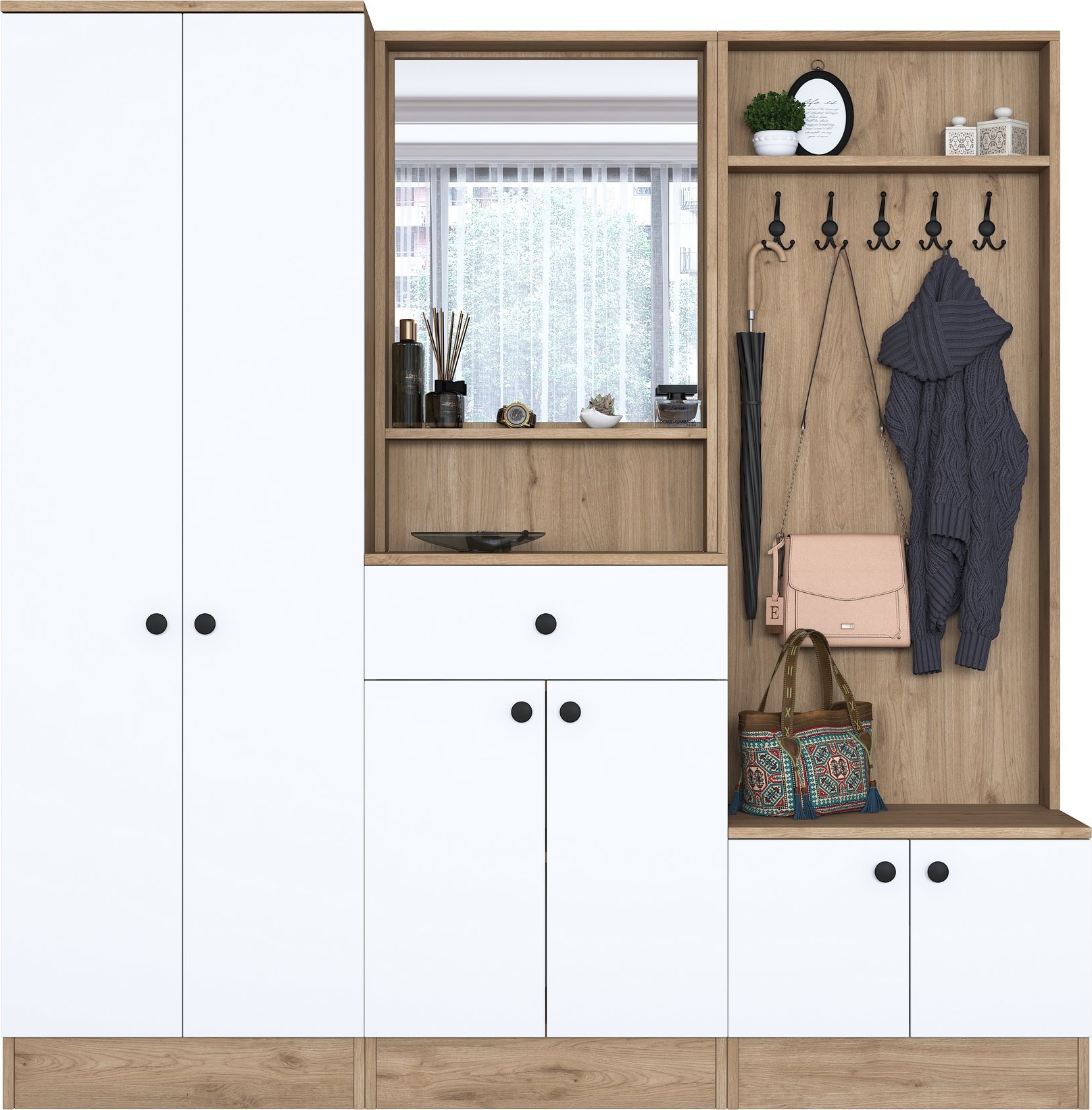 Mendy hallmøbler 180 cm - Valnøtt/hvit