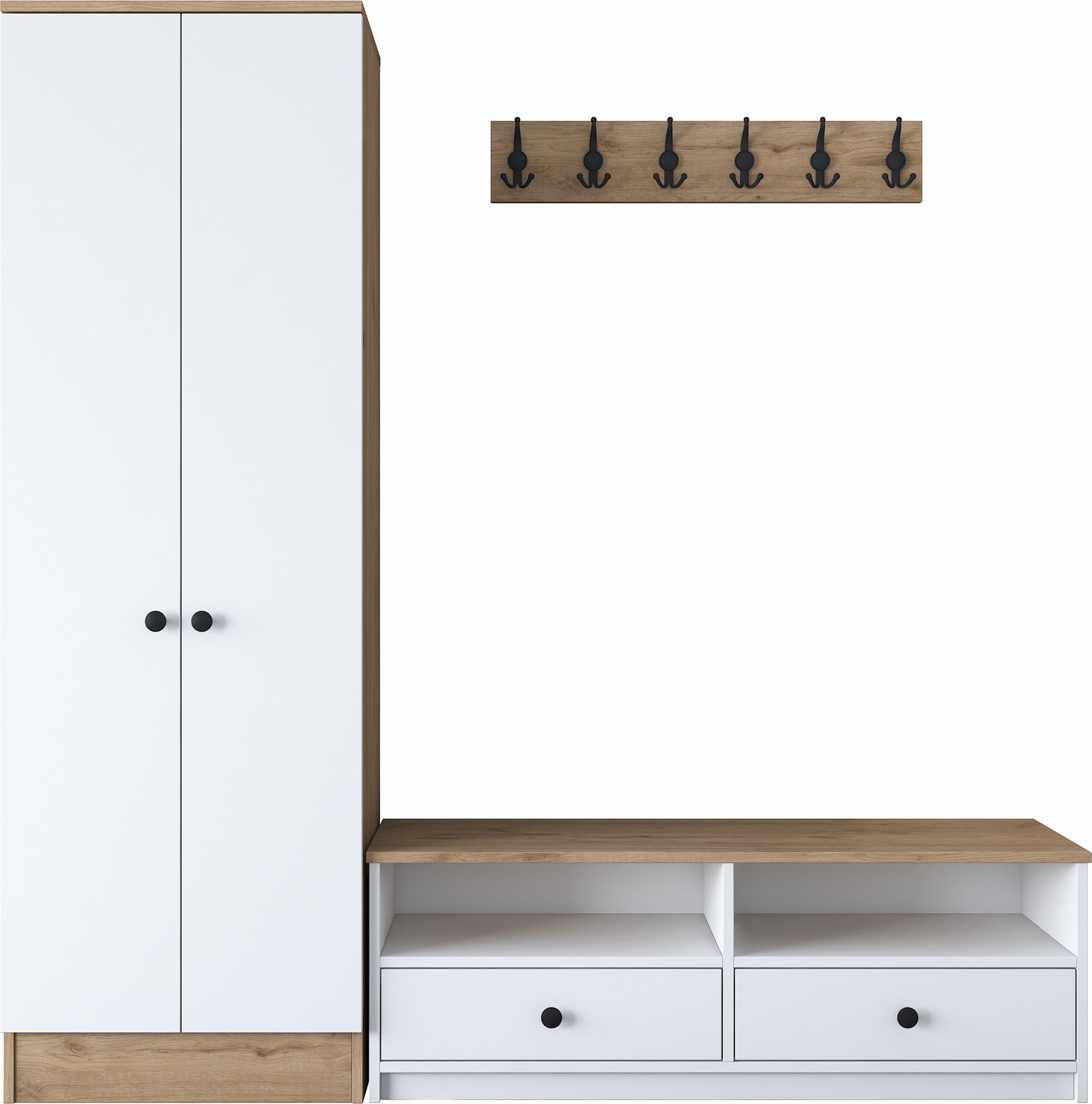 Mendy hallmøbler - Hvit/valnøtt