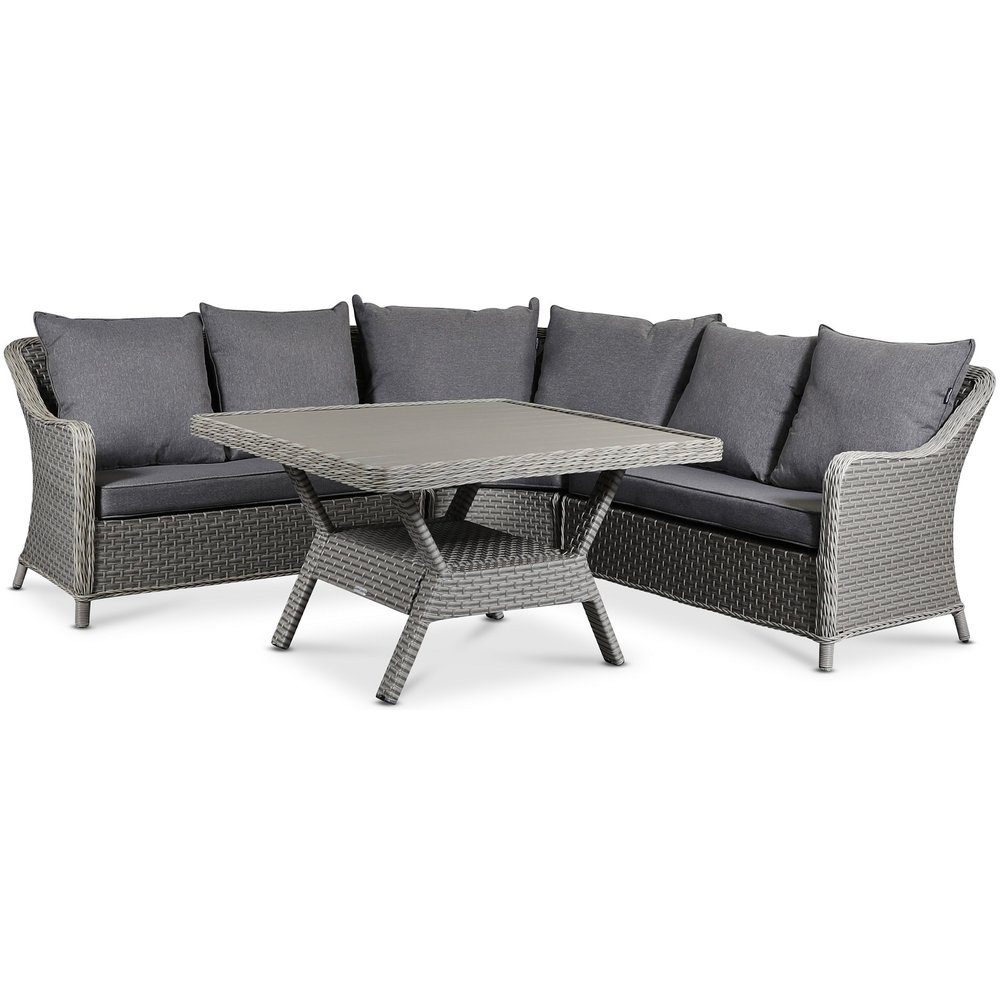 Miami sofagruppe med tilhørende spisebord gir deg en utemøbelgruppe av ypperste klasse i gråbeige kunstrotting. Miami kommer fra det norske kvalitetsmerket Easy Living by Martinsen. Holdbar stamme i aluminium som tåler utemiljø. Bord med topplate i aintwood for enkel rengjøring. Komplett med fine grå puter i værbestandig materiale. Avrundet hjørne for mer sitteoverflate og en stilrenere bakside på sofaen.