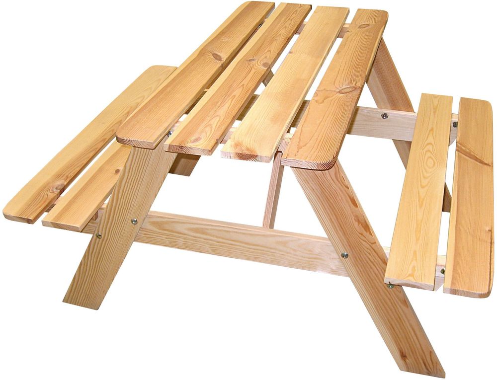 Klassisk robust benk i naturfarget furu der sitteplasser og bord er kombinert. Passer bra når fler skal samles ute til en liten picknick eller annet. Den nøytrale fargen gjør å benken passer inn i de fleste utemiljø.