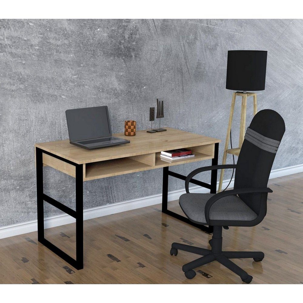 Skrivebord laget av tre og metall.