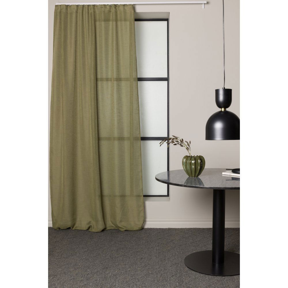 Gardinlengde i grønn farge med et fint stoff laget av polyester.