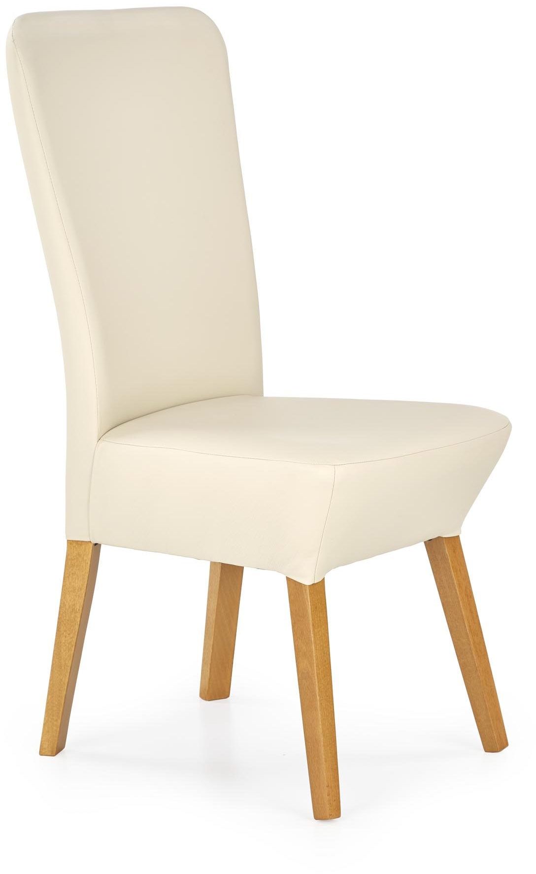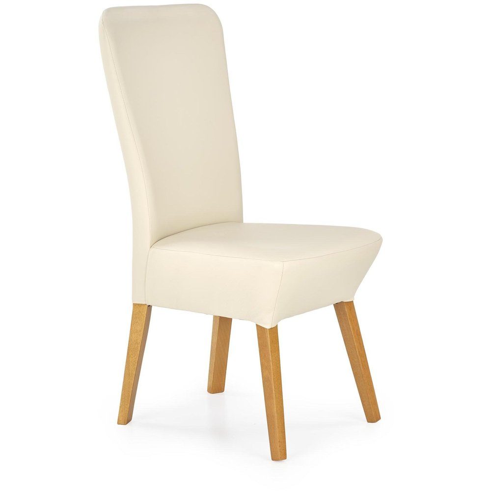 En koselig spisestol med et moderne design. Spisestolen er laget av heltre med det naturlige treutseendet på beinene og setet er kledd med et svært behagelig kunstskinn som gir maksimal komfort.