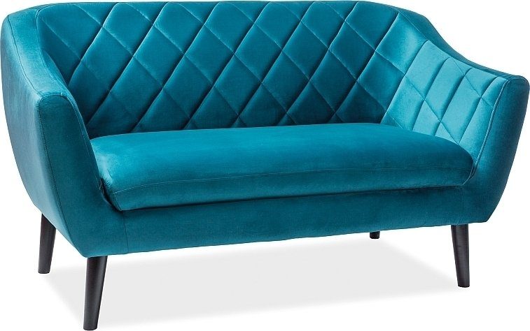 Sofa i bøk. Polstret med polyesterstoff i fløyelsimitasjon. Flammesikkert stoff.