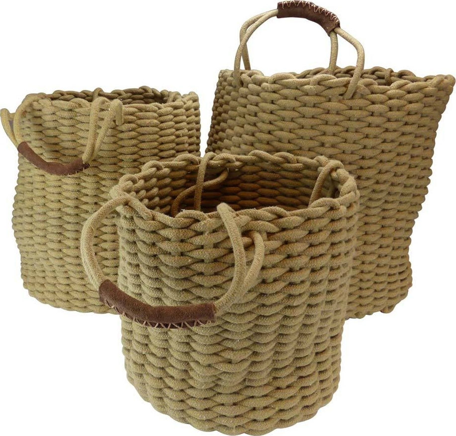 3 kurver i flettet bomull med håndtak av kunstskinn.
