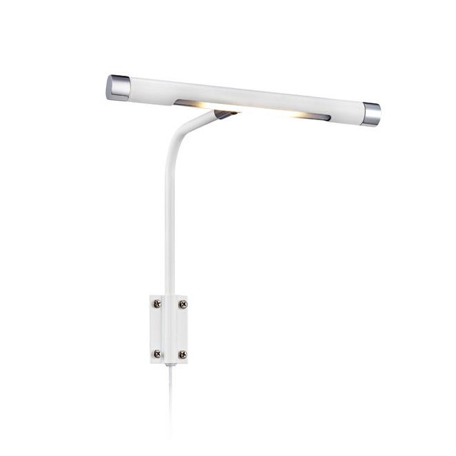 Monet sin herlige tavlebelysning med et stilfullt design. Hvitlakkert metall med detaljer i krom. 2 meter ledning med strømbryter på ledningen. 6W fast LED. 450 lm. 3000 K. 120° spredningsvinkel. Energiklasse A. Festes på veggen ovenfor eller bak tavler.